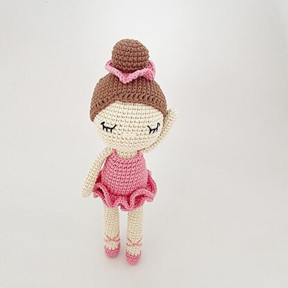 The ballerina measures approximately 30 cm from feet to hair when using the materials mentioned above. If you are using yarn with a different gauge the toy’s measurements will change. Feel free to use any yarn you want, the toy itself won’t change, just the size. Make sure you sew tightly every part of the toy.