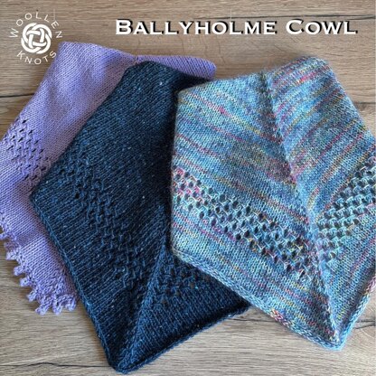 The design is worked flat to begin with and then joined in the round with a panel of simple lace work. You can choose how to finish your cowl, with directions included for a straightforward cast off, a picot edge or an i-cord (shown in the photos).