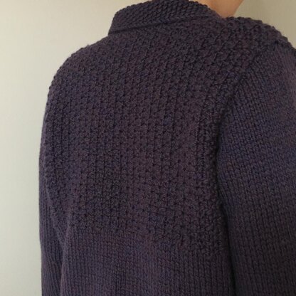 Knitted from the bottom upwards with flattering side seam shaping and a pretty textured yoke for interest, the buttonhole and button borders are worked at the same time as the fronts to avoid too much sewing up at the finishing stage.