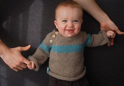 An easy top-down unisex sweater with handy roll-up tabs for tiny explorers. This sweater is completely seamless and has minimal finishing. Skills Required: knitting, purling, knitting in the round, increasing, decreasing, knitting on dpns, picking up stitches, yarn over