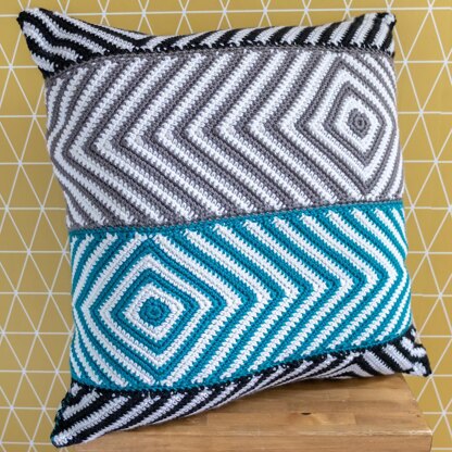Baltic Cushion is a vibrant, geometric design for a cushion cover. Its constructed with bands of chevrons worked in three colourways. The pattern is graded as Easy as only basic stitches are used.