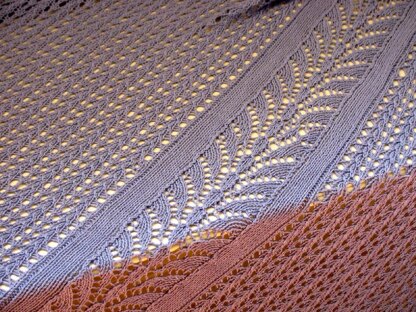 This baby blanket takes two wonderful lace patterns and puts them together so there is a center panel that echoes the rest of the lace surrounding it. This pattern/formula is written for a DK weight yarn but by adjusting the stitches on either side of the panel you can use other weight yarns. Additionally the pattern can be adjusted in length based on whatever size blanket you wish.