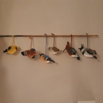 **These birds make great, colorful hanging ornaments, for your Christmas tree for example!**Try your hand at knitting some or all of these birds, and see if your holiday guests can identify these feathered friends!