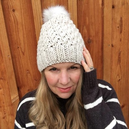 This hat is knitted flat and joined together, so no knitting on a round! The edge stitches help the seam to become hidden in the pattern once joined.