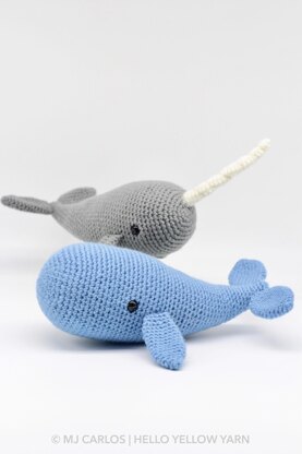 Crochet your own amigurumi toy whale and narwhal. Barney Whale and Nina Narwhal are the best of friends! Playing chase and hide and seek are their favourite games! Pattern is in English using US crochet terms.