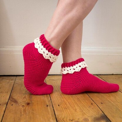 Crochet socks are a wonderful thing, they are super quick to make and very easy. However; they are quite different from knitted socks, crochet produces thicker fabric than knitting, therefore resulting in a bulkier sock, which is just perfect to wear around the house and in your wellies or walking shoes.