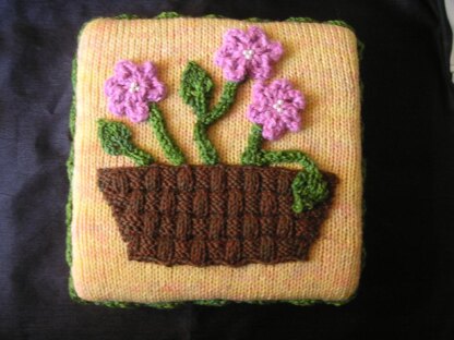 As fall approached and my flower garden was withering, I started knitting flowers. My Grandmother had a wicker style basket that she used for picnics. Her name was written in pencil on the side. This basket weave pattern has a similar appearance to Grandmother's wicker design from the early 1920's.