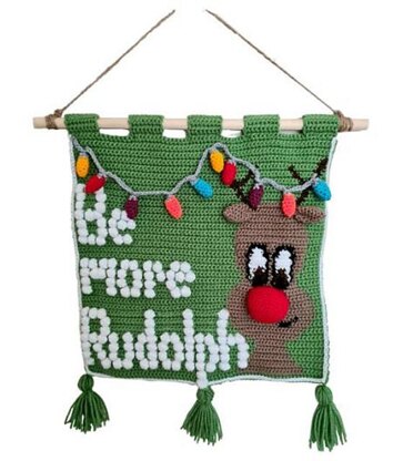This listing is an original pattern to create your own unique festive wall hanging 'Be More Rudolph', a perfect addition to your festive decorations. The wall hanging is 12 inches square