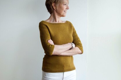 Introducing Beach Weekend – a light weight pullover with elbow length raglan sleeves and a wide boat neckline. Its fitted stockinette bodice showcases the lace of its slim sleeves that are worked in the easily mastered Tilting Blocks stitch pattern. This design is worked from the top down with minimal shaping – perfect for knitting on the beach, where most of its knitting actually did occur, and for year-round wear.
