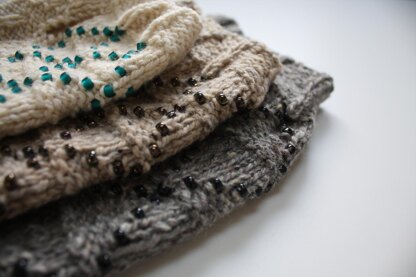 The following stitches were used in this pattern: knit, purl, m1 p-st, k2tog, p2tog, s2kp, place bead with a crochet hook (sweater can be made without beads), cast on at the back of the row.