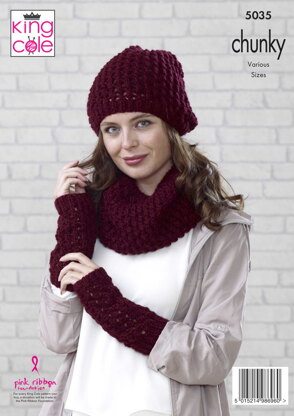 Beanie, Scarf, Mittens, Snood, Slouchy Hat & Wrist Warmers in King Cole Magnum Chunky - 5035 - Downloadable PDF