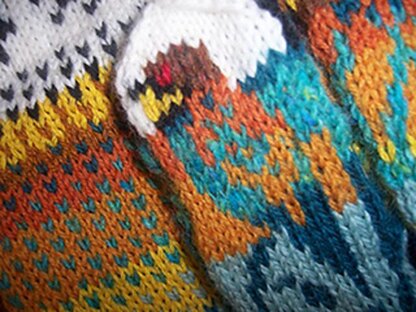 Some details are embroidered with duplicate stitch. According to Wikipedia (collection of world's wisdom, haha), bee-eaters nest in European part of Russia where I'm from, but I've never seen them live in nature there or anywhere else. if you have, please let me know where!