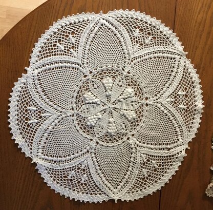 I used approximately 675 yards size 10 thread. The pattern contains front & backpost stitches as well as puff stitches.