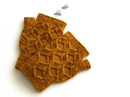 The Beeswax mitts are a pair of cosy, cabled hand-warmers, completing the set of Beeswax hat, cowl, and mitts. They all feature the same double-layered honeycomb pattern, flowing naturally into and out of the ribbing. The stretchy stitch patterns help ensure a good fit, and the shaping around the thumbs blends into the surrounding honeycomb.