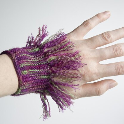 Befringed is a trendy little self-fringing cuff, that would be a perfect stash buster project for 4 ply sock yarn leftovers. Also it can be a nice project to learn a few techniques like kitchener stitch, knitted cast on and i-cord bind off.