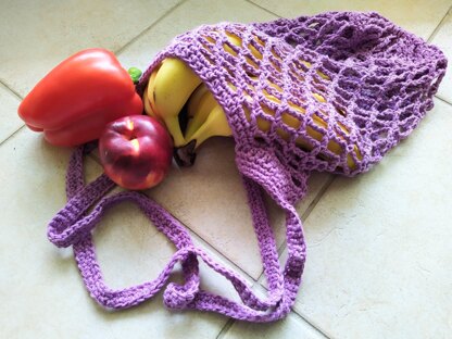 Classic crochet market bag - a simple, beginner friendly market bag made using worsted weight cotton yarn. Strong, sturdy and washable! With single use plastic bags being phased out, reusable market bags are a popular item to use when shopping. This bag rolls up nice and small to fit into your handbag or backpack, ready to pull out when needed!