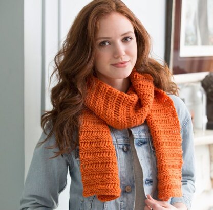 Beginner Garter Drop-Stitch Scarf in Red Heart With Love Solids - LW4129