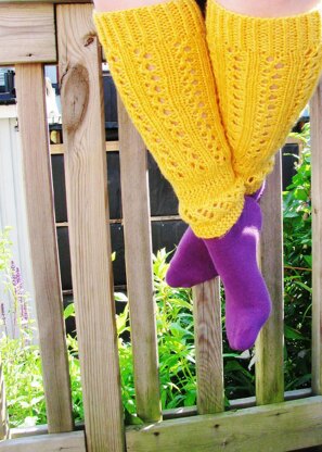 The perfect pair of leg warmers, for those days when you really want to wear that skirt or dress, and it’s just a wee bit too chilly! Wear them pulled up or pushed down. Beniga is worked from the bottom, starting with the cuff which is worked sideways with the ends grafted together. Stitches are then picked up to knit the lacy rib for the leg. Lots to keep your interest!