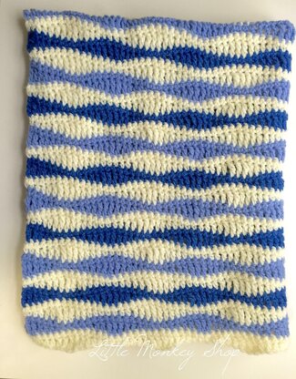 This blanket is crocheted in a modern wave pattern and is a reversible with straight side edges.