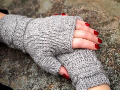 The construction for these mitts is slightly different than typical. Knit the chain cable and join the two ends, then pick up stitches for the hand. It is a slightly more complex cable than a simple crossover. This pattern includes instructions for both fingerless and full-hand mittens. The matching Beorn hat is also available, in DK and Worsted.