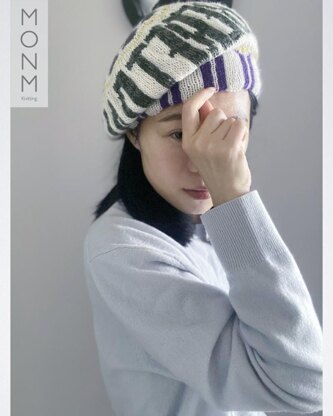 ‘Beret Day’ beret is inspired by ski theme patterns. It is a classic shaped beret that can also be worn as a loose top beanie. This patterned beret features ‘Beret day is a good day’ sentence, geometric colored patterns with wide double edge. ‘Beret Day’ beret is worked from bottom up in one piece.