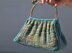 Sizes: The finished bag measures 5” from the top to the bottom of the knitted fabric. (The handle adds an additional 3” of height.) The front and back panels are 8.5” wide and the sides are almost 5” wide at the lower edge. Be sure to purchase a handle that fits. Additional or fewer repeats of the stitch pattern can be worked if another size is required.