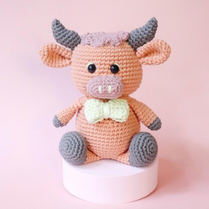 Bernie the Buffalo is the cutest little guy with his characteristic horns and big, green bow.