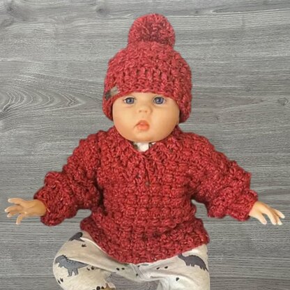 Create a cozy textured baby and child sweater / jumper and hat set in seven sizes from 0–3 months to 10 years. The pullover features a v-neck and is worked seamlessly from the bottom up with no sewing of seams. The hat is made in the round top down. A unisex design for boys or girls.