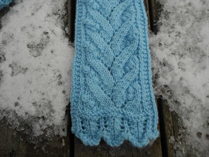 This Lacy scarf is a lot easier to knit than it looks! It features a simple vine stitch loaded with berries! The berries are really very easy and are fun to knit which adds texture to an otherwise common pattern stitch, also easily worked!