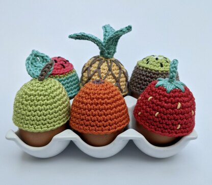 I love creating a set of patterns where each item is different so here is a download for six cute fruit egg cosies.