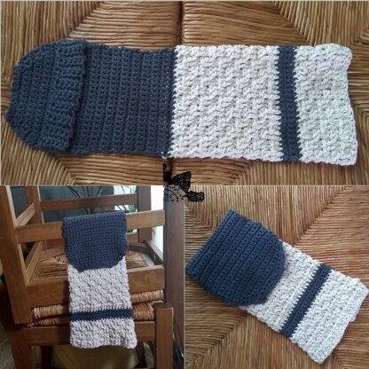 Designer: Julia Schwartz Yarn: Any worsted cotton. 2 colors needed. Model used Lion Brand yarn: Re-up, 85% cotton, 15% polyester, 114 yards, 2.5 oz. colors Ecru and Denim Hook: g/ 7 4.5mm Notions: Tapestry needle Size: I wasn’t sure how to measure this. 5 ½ by 15 ½ Gauge: 16 dc + 10 rows = 4 inches Stitches Used: Chain (ch), Slip Stitch (sl st), Single crochet stitch (sc),Foundation double crochet (Fdc), front post double crochet (fpdc), back post double crochet (bpdc), sc 2 stitches together (sc2tog)