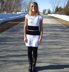 There are short rows over the bust, and shaping along the sides. The black & white color combo gives it a sleek, modern feel....but imagine all of the possible color combinations.