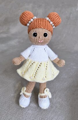This is a pattern for a stuffed toy Bi - the ballerina. The toy, shoes and the dress are knitted flat on 2 needles and then sewn, but the sleeves are worked in the round on double pointed needles