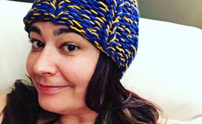 This is my go-to comfy hat for cool fall weather. It's fairly roomy so if you want a smaller hat, just shorten the first row by however many multiples of 4-stitch repeats you desire.