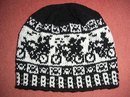 The special "feature" about this stranded beanie, is that you do not repeat the same motor biker all around the beanie but you have 3 different ones in different sequence around the whole beanie. This results in a motor bike gang of a total of 6 motor bikers.