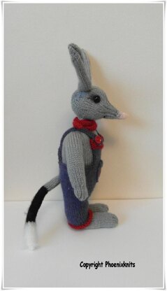Billy Bilby, is a native Australian animal on the endangered species list and being adopted by Australians as their own Easter Bunny. My Billy Bilby stands 12 inches high to the top of his ears, is knitted flat on 3mm needle using DK yarns.