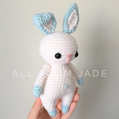 From the top of the ear it is about 21,5 cm (8,5”) high, with worsted weight 100% acrylic yarn and a 3.50 mm crochet hook (US size E/4).