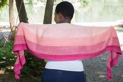 This shawl is knit using DK organic cotton yarn making it perfect for spring and summer. Garter stitch is alternated with a simple lace pattern that’s very easy to memorize. It’s a perfect project to take for trips and beginners can also work on this project without any difficulty. The shawl is in a crescent shape.