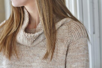 The perfect transition piece. Graphic rib etches along the shoulder, cuffs, hem, and cowl edges, while perfectly simple stockinette canvases the body & sleeves. Gentle waist shaping & a split hem are a classic finish.