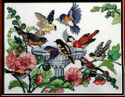 By Barbara Baatz Hillman. Our feathered friends frolic in the fresh water found in this flower garden. Perhaps your favorite bird can be found here in the bird bath. They are always fun to watch while they preen.\n