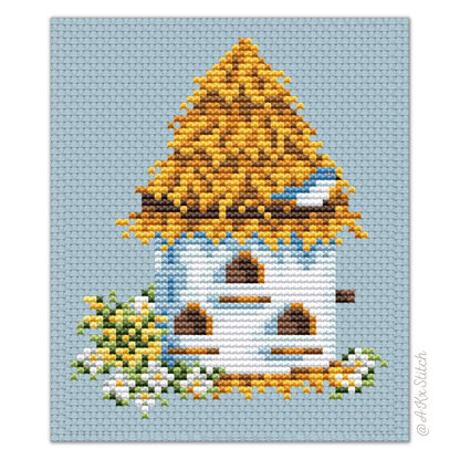 Birdhouse Sampler 01 Counted Cross Stitch Pattern and PDF Digital Download. Easy to Follow Embroidery Chart featuring a single cute birdhouse in a primitive vintage folk style. Great handmade gift idea for a bird lover friend or living room wall art decor. Please note this pattern is part of a full set, which can be purchased separately. Stitched on Aida 14ct: 9 x 11 cm (4 x 4 in)DMC Threads: 13 solid colours (0 blends)Used stitches: full cross stitch, backstitch, French knots (optional)Skill level: Beginner / IntermediateStitch time: 15-20hCross stitch pattern in PDF, Instant Digital Download includes: 1) cover page with preview; 2) instructions, symbols key and shopping list (DMC thread colour numbers and estimates, as well as fabric options); 3) two black and white charts, with and without backstitch; 4) two colour charts, with and without backstitch; 5) single-page file for Pattern Keeper (available on request).Please note: This pattern is for personal use only - not for commercial use. You can't make copies of our charts to distribute (either as PDF or printed versions) but you can definitely sell your finished cross stitch work.