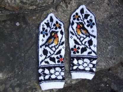 For a limited time, spend $12, get 25% off with the code spring. Individual Ravelry patterns only. Celebrate Spring with more birds! These mittens can be decorated with duplicate stitch embroidery (optional). You can also knit them with any two solid colors, or with solid / gradient yarn combination. I took courage and color-edited one picture out of curiosity. This pattern can also be knit light-on-dark. Testknitted (so far) by Strikkeheggland and Mabe58. We might see more interesting photos soon ;)).