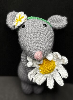 The mouse is quite simple to make in rounds using a small size hook and double crochet stitches, creating a firm amigurumi mouse. Larger hooks and heavier yarn will make a larger version if needed. The pattern can be used to make a thoughtful thank you gift or a more memorable Birthday gift and keepsake. The pattern includes the mouse design, with a Daisy and matching headband. I have used a Sirdar cotton DK yarn for the Daisy for a firmer finish.