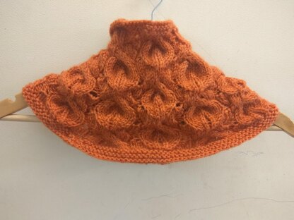 Bitcoin is a perfect one-skein cowl with an interesting yet easy cable and lace pattern that looks like coin-shaped leaves. Available in a single size, the cowl comes with a choice of a wide or narrow neck opening.