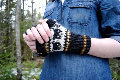 Meet the Black Bears, the most recent member of the Green Forest Gang! They are shy and lazy, but can be tempted out to play with the promise of sweet golden honey! Knitted in the round on DPNs with 100% wool, these fingerless mitts are perfect for wearing during the fall before hibernation mode.