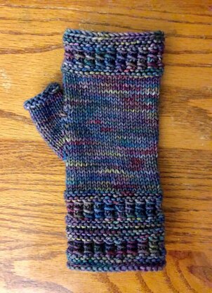 I wanted the mitts to have both texture and stockinette and keep them on the easy to knit end of the spectrum and show off the yarn.  Both left and right are the same.  The thumb adds a finished look to the mitts.  Written instructions are included.