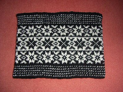 The matching cowl for the black star beanie has a nice black and white ribbing and the same black and white norwegian stars all around.