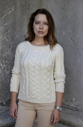 Nothing works so well together like traditional cable design and luxurious cashmere-blend yarn. This cropped, boat-neck pullover, featuring traveling cables that emphasize the raglan lines, has a 2'' of positive ease to get a comfortable yet flattering look. Knit in super-soft Knit Picks' Capra, this sweater worked in pieces from bottom to top and seamed.