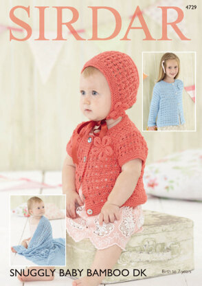 Blanket, Bonnet and Cardigans in Sirdar Snuggly Baby Bamboo DK - 4729 - Downloadable PDF