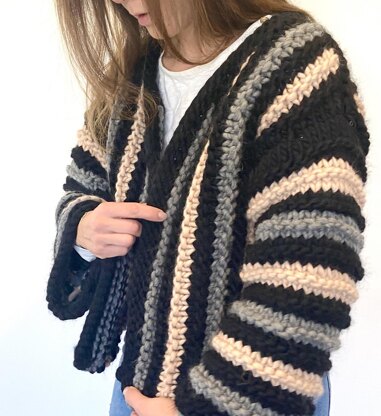*This is knit with a bulky weight yarn and a US #15 needle. The sample was knit with We are Knitters the Wool but any yarn the same weight will work. The sweater has a gauge of 2 sts =1" in garter stitch.